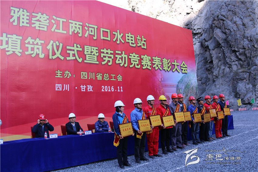 當(dāng)天下午,雅礱江流域水電開發(fā)有限公司和兩河口建設(shè)管理局在兩河口壩址現(xiàn)場舉行了大壩心墻填筑儀式暨勞動(dòng)競賽表彰大會(huì)。出席儀式的有:全國總工會(huì)勞動(dòng)和經(jīng)濟(jì)工作部勞動(dòng)競賽處處長康岳,省總工會(huì)黨組書記、副主席胥純,省總工會(huì)黨組成員、副主席彭闖,州委副書記李江。
