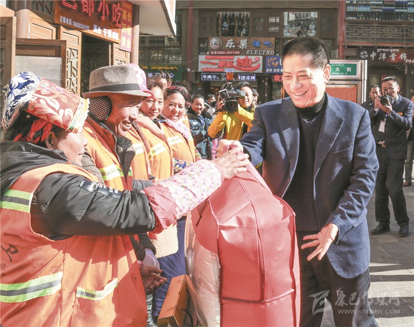 本網(wǎng)訊(記者 鄧安華 楊杰 文/圖)新春佳節(jié)來(lái)臨之際,1月22日下午,州委書(shū)記劉成鳴先后深入康定市將軍橋環(huán)衛(wèi)點(diǎn)和情歌廣場(chǎng),親切看望和慰問(wèn)堅(jiān)守一線的電力職工、環(huán)衛(wèi)工人和執(zhí)勤民警,為他們送去了誠(chéng)摯的問(wèn)候和新春的祝福,并送上了慰問(wèn)金和禮品。