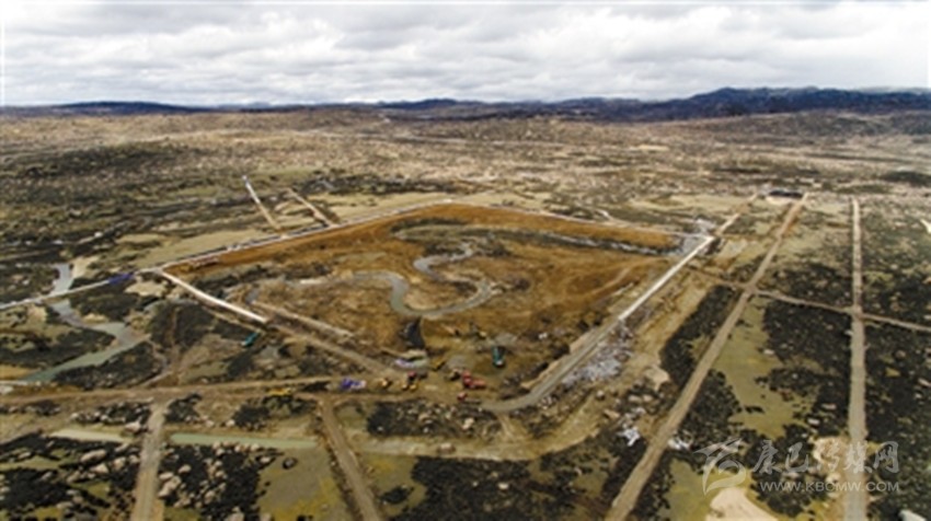四川甘孜藏族自治州稻城縣海子山,平均海拔4110米。在散落著數(shù)米寬巨石的曠野上,一塊有10個(gè)足球場(chǎng)大的圓形區(qū)域已經(jīng)成型,挖土機(jī)忙著挖出3個(gè)“品”字形、深4.5米的巨型水池。