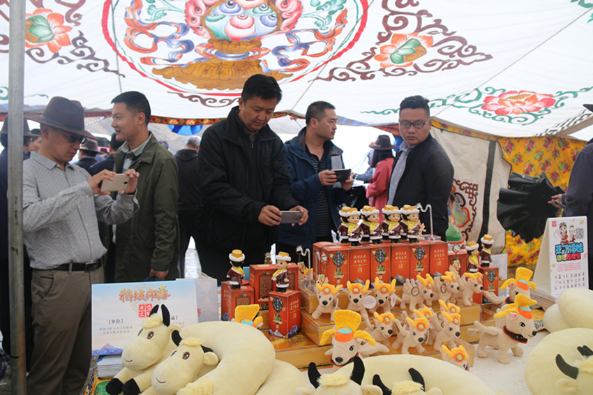 色拉鄉(xiāng)村旅游綜合體內(nèi)展示的稻城文創(chuàng)產(chǎn)品引來眾多參會(huì)者圍觀。