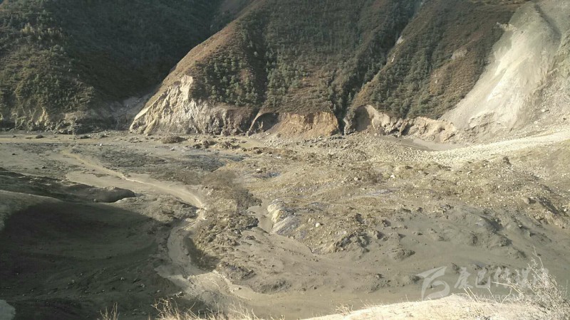 上午10點過,突擊隊抵達生公村一個山坡上,看見了堰塞體。隨后,突擊隊繼續(xù)出發(fā),下午5點過,突擊隊終于抵達了距離壩體約200米遠的地方,并在這里用衛(wèi)星電話向后方播報了信息后,便攀上了高約70米,寬約200米的堰塞體實地查勘,并再次向后方匯報了情況。
