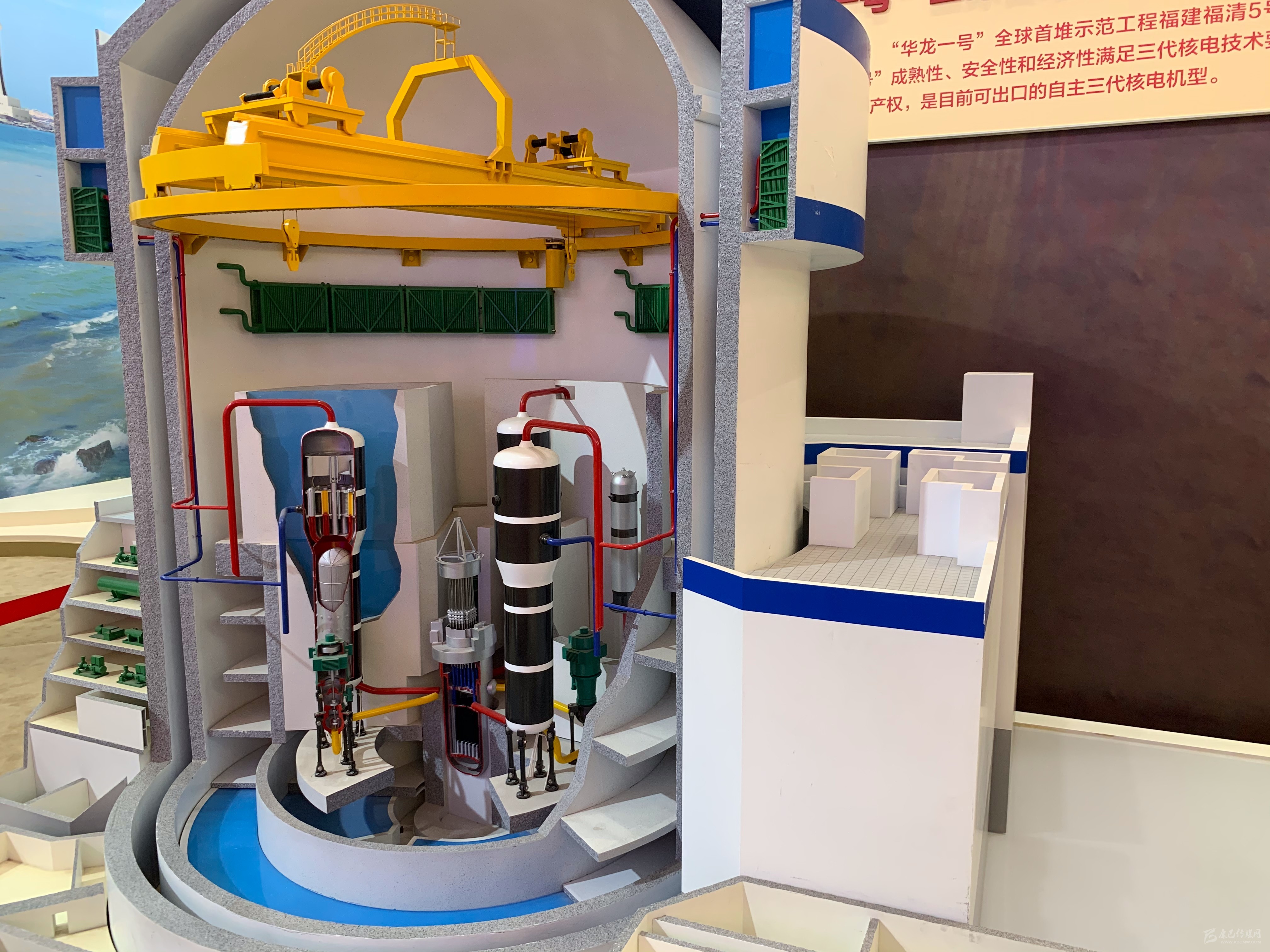 展館現(xiàn)場(chǎng),縮小版的華龍一號(hào)模型吸引了很多觀眾駐足。