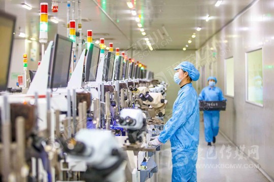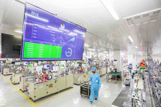 遂寧市經(jīng)開區(qū)藍彩電子智能信息化車間,工人正在生產(chǎn)線開足馬力加緊生產(chǎn)。