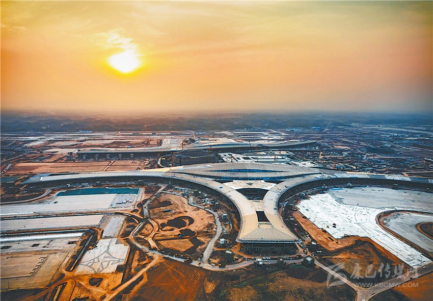 俯瞰晨曦中的成都天府國(guó)際機(jī)場(chǎng)施工現(xiàn)場(chǎng)。成都天府國(guó)際機(jī)場(chǎng)各項(xiàng)工程自全面復(fù)工以來,在嚴(yán)格防疫的基礎(chǔ)上,力搶工期,加快建設(shè)。