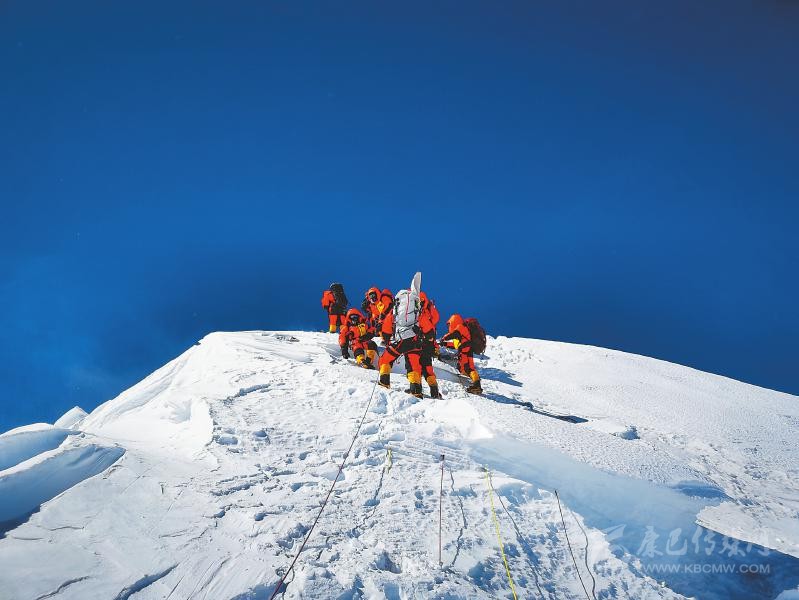 5月6日,登頂測量正式啟動,因天氣原因兩度推遲沖頂計(jì)劃。27日,登頂隊(duì)員戰(zhàn)勝極高海拔區(qū)域降雪、大風(fēng)等艱險(xiǎn),成功登頂。隊(duì)員在峰頂停留了150分鐘,其間還開展了峰頂雪深和氣象等測量,創(chuàng)造了中國人在珠峰峰頂停留時長新紀(jì)錄。