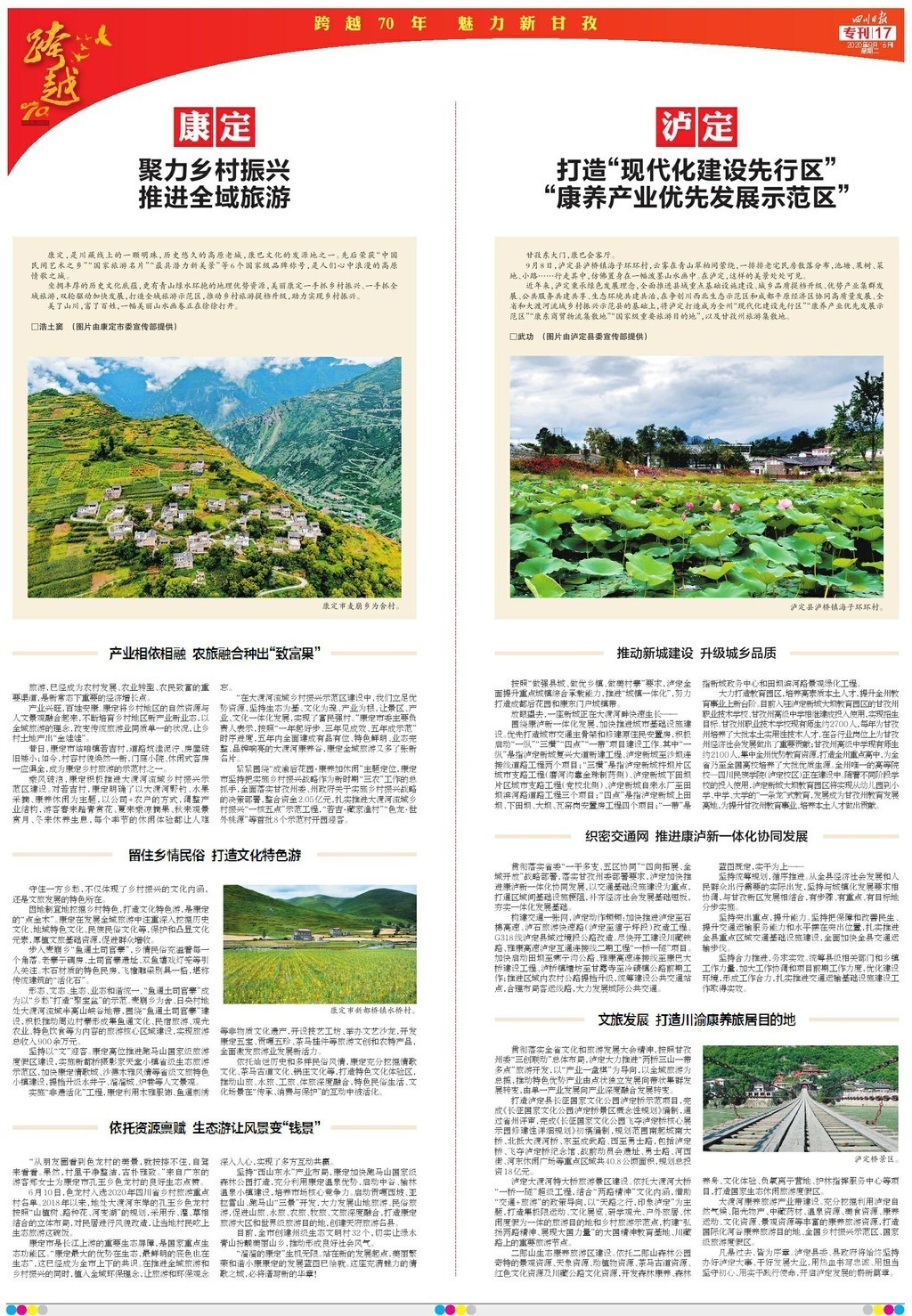 最后四個整版,聚焦康定、瀘定、雅江、理塘、巴塘、丹巴、新龍、色達(dá)8個縣(市)的經(jīng)濟(jì)社會發(fā)展和規(guī)劃,各有特色↓↓↓↓