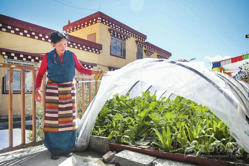 10月12日,甘孜縣吉絨隆溝集中安置點村民展示自己種植的蔬菜。