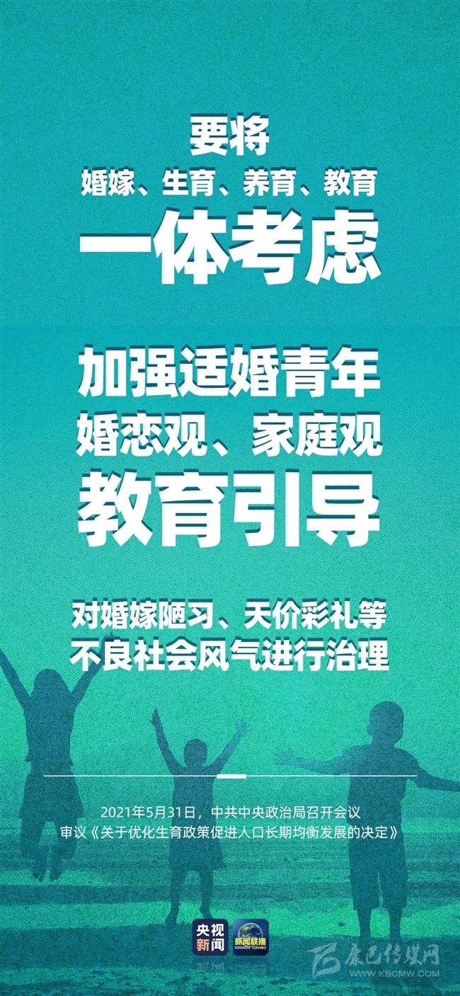 積極應(yīng)對人口老齡化,我國將出臺重大政策舉措。中共中央政治局5月31日召開會議,會議指出,進(jìn)一步優(yōu)化生育政策,實(shí)施一對夫妻可以生育三個(gè)子女政策及配套支持措施,有利于改善我國人口結(jié)構(gòu)、落實(shí)積極應(yīng)對人口老齡化國家戰(zhàn)略、保持我國人力資源稟賦優(yōu)勢。