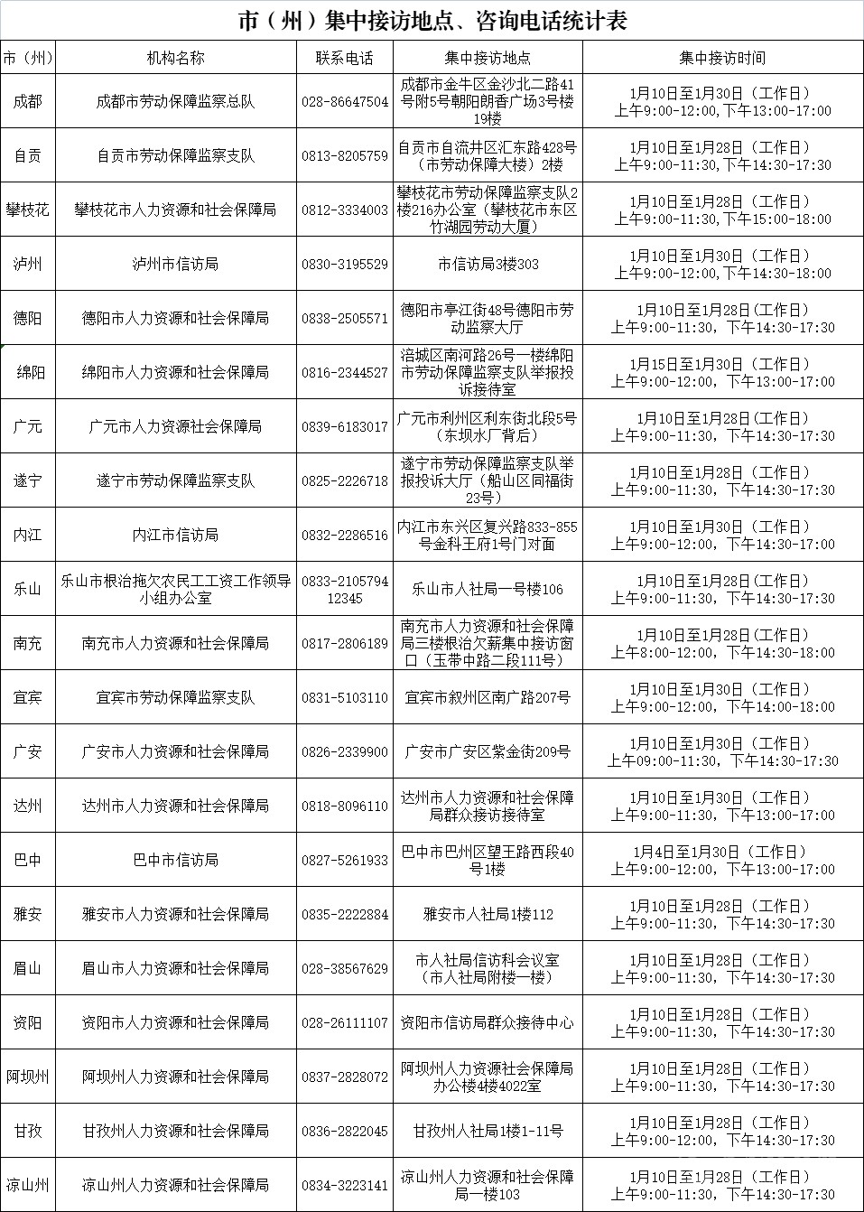 為深入推進(jìn)“我為群眾辦實(shí)事”活動(dòng),進(jìn)一步暢通舉報(bào)投訴渠道,壓實(shí)各地各有關(guān)部門責(zé)任,切實(shí)做好春節(jié)前保障農(nóng)民工工資支付工作。從1月10日起,四川省開展拖欠農(nóng)民工工資舉報(bào)投訴集中接訪活動(dòng)啟動(dòng)。省級(jí)層面,省根治拖欠農(nóng)民工工資工作領(lǐng)導(dǎo)小組辦公室組織人力資源和社會(huì)保障廳、住房和城鄉(xiāng)建設(shè)廳等10家成員單位有關(guān)負(fù)責(zé)人集中接訪問,各市(州)也同步開展集中接訪活動(dòng)。