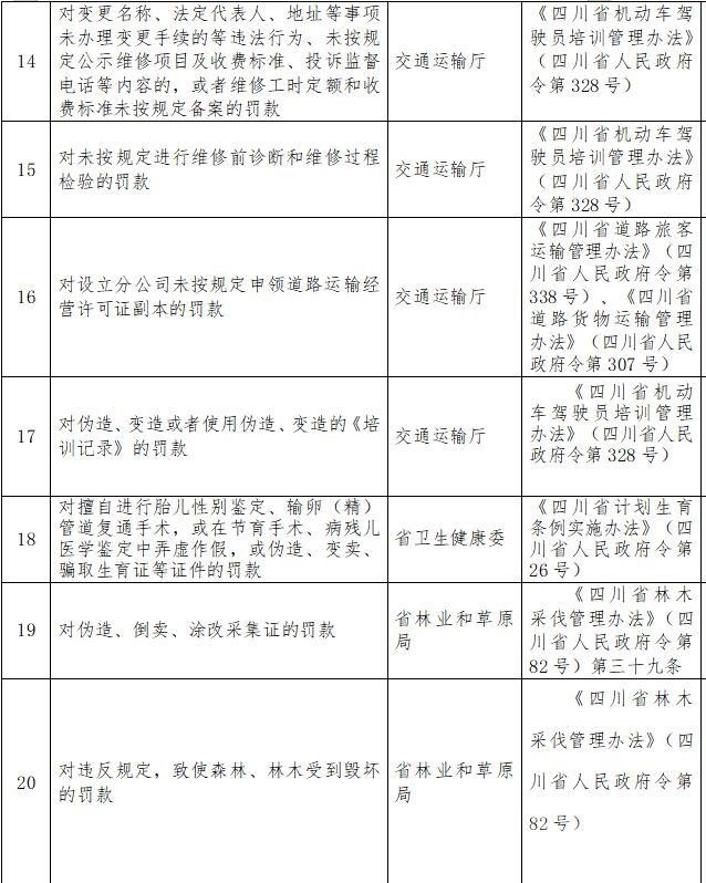 匯總所有意見建議后,《四川省人民政府關(guān)于取消和暫停行使一批罰款等事項(xiàng)的決定(征求意見稿)》決定取消和暫停行使25項(xiàng)罰款事項(xiàng),其中取消19項(xiàng),暫停行使6項(xiàng)。罰款事項(xiàng)取消和暫停行使后,依照法定程序修訂相關(guān)省政府規(guī)章。