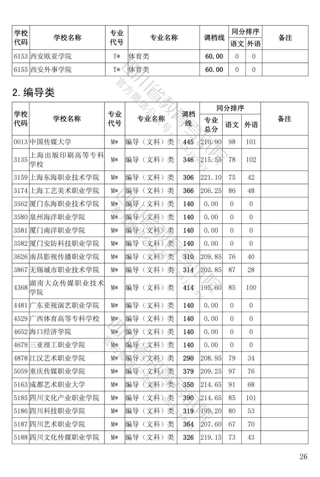 四川省2022年普通高等學校藝術(shù)體育類??婆延?月5日投檔錄取。為方便廣大考生和家長及時了解錄取信息,省教育考試院按非編導類和編導類發(fā)布了藝體類分校、分專業(yè)類調(diào)檔線。