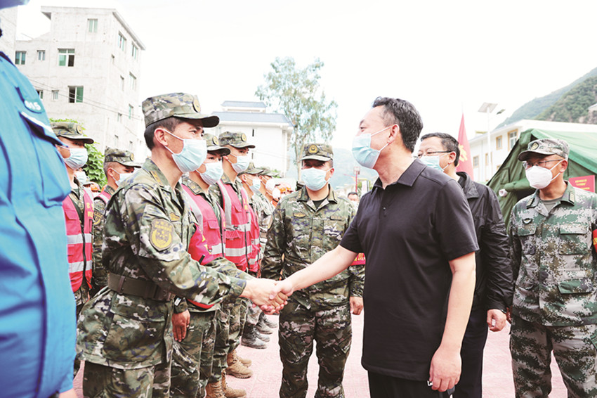 沈陽來到“9·5”瀘定縣6.8級地震抗震救災前線指揮部,看望值班值守干部和醫(yī)務人員、地震專家、搶通保暢隊伍。他說,這次地震既檢驗了我們的應急救援體系和能力水平,也是對各級黨組織和廣大黨員干部的巨大考驗。地震發(fā)生后,前線指揮部統(tǒng)籌調度、高效運轉,各條戰(zhàn)線沖鋒陷陣、攻堅克難,確保了抗震救災各項工作有力有序開展,彰顯了甘孜精神、甘孜速度、甘孜力量。當前,抗震救災仍處在關鍵時期,希望大家堅持人民至上、生命至上,咬緊牙關、繼續(xù)奮戰(zhàn),團結組織廣大干部群眾努力打贏抗震救災這場硬仗。在看望省消防救援總隊、省森林消防總隊、解放軍陸軍勤務支援某旅、武警四川總隊機動第二支隊、特警支隊、安能集團和兄弟市州救援隊伍時,沈陽說,一方有難、八方支援,面對突發(fā)自然災害,各方救援力量火速馳援,不畏艱險、不怕犧牲,戰(zhàn)山關、渡激流,水陸空齊發(fā)力,爭分奪秒搶救生命,一幅幅逆向而行的搶險畫面,一個個“飛奪瀘定橋式救援”的英雄身影,深刻詮釋了中華民族守望相助、和衷共濟的血脈親情,康巴兒女永遠感恩、銘記于心。