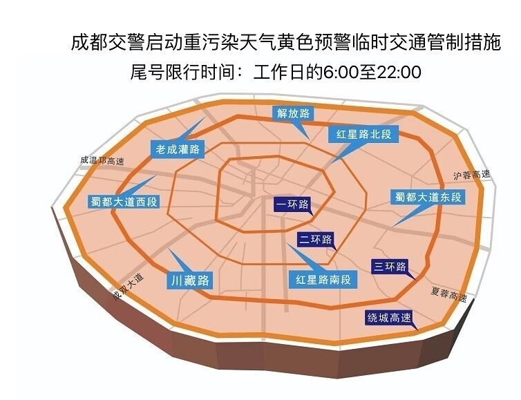 11月7日零時(shí)起,成都啟動(dòng)重污染天氣黃色預(yù)警臨時(shí)交通管理措施