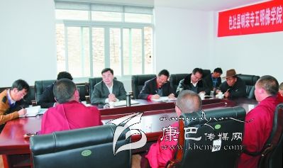“我們這次來的目的就是想和大家交流,聽聽五明佛學(xué)院有什么困難,有什么需要黨委、政府支持的。”一走進(jìn)寺院,胡昌升便道出了此行目的。他說,僧尼是基本群眾、寺廟是基本社會單元。黨委、政府應(yīng)該關(guān)心所有的僧尼和寺廟,但寺廟也要履行好自己的責(zé)任和義務(wù),真正把五明佛學(xué)院管得有序,讓這里的僧眾在文明和諧的氛圍中提高自己的佛學(xué)水平。