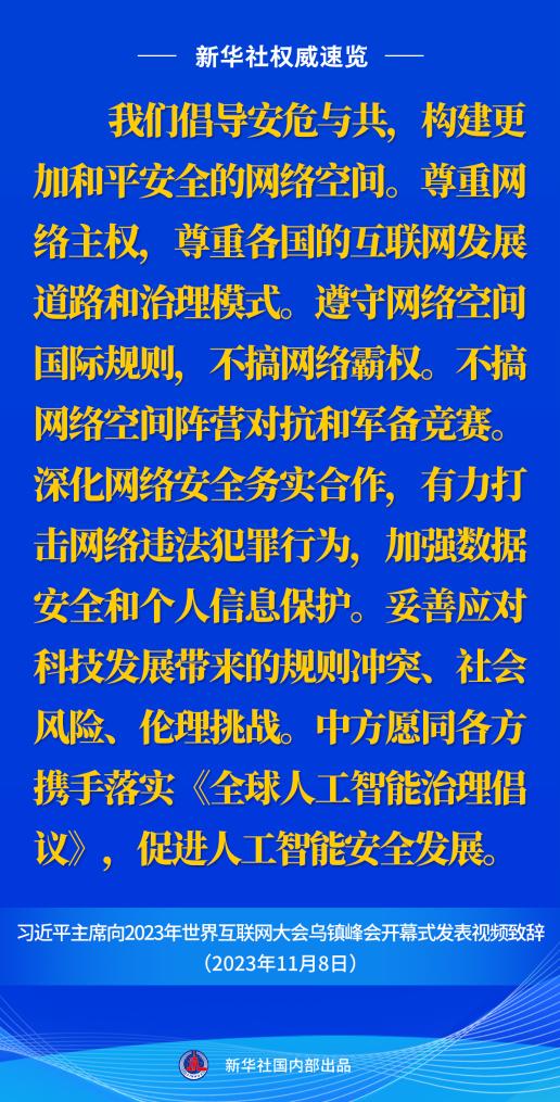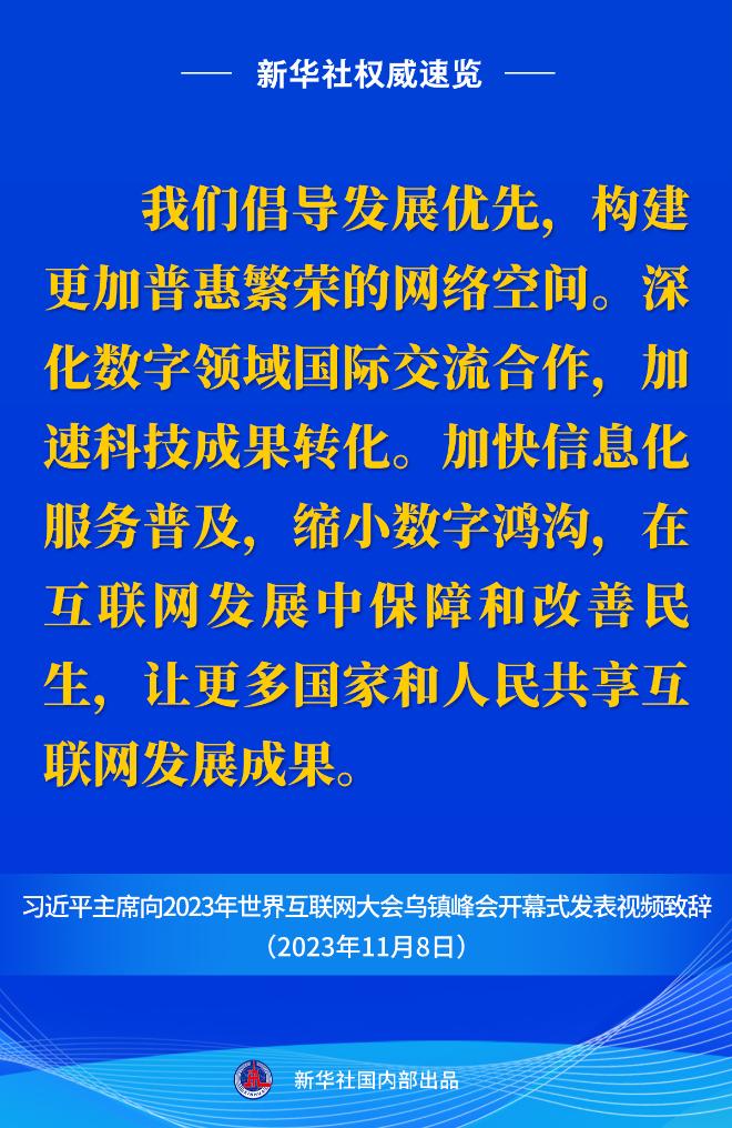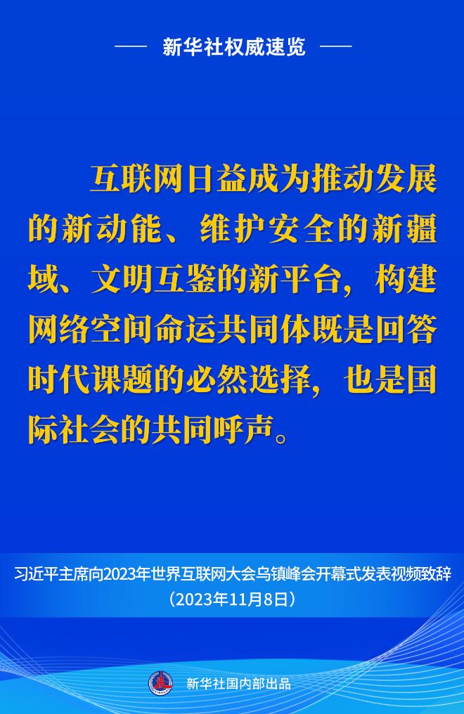 11月8日上午,國家主席習近平向2023年世界互聯(lián)網(wǎng)大會烏鎮(zhèn)峰會開幕式發(fā)表視頻致辭。一起來看金句。