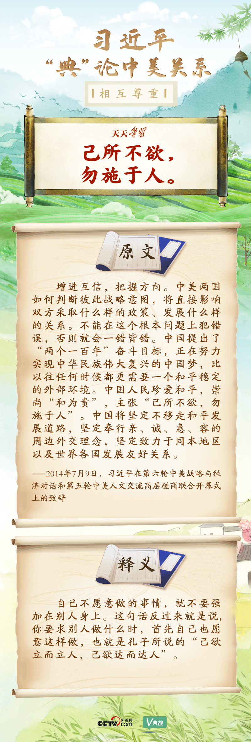 黨的十八大以來,習(xí)近平主席就中美關(guān)系發(fā)表了一系列重要講話。他站在時(shí)代高度分析、研判中美關(guān)系現(xiàn)狀及發(fā)展趨勢,并引經(jīng)據(jù)典為發(fā)展中美關(guān)系指出正確方向。這些論述蘊(yùn)含深刻的戰(zhàn)略思維和政治智慧,具有重大現(xiàn)實(shí)意義和深遠(yuǎn)歷史意義。央視網(wǎng)《天天學(xué)習(xí)》與您一起深刻領(lǐng)會(huì)。