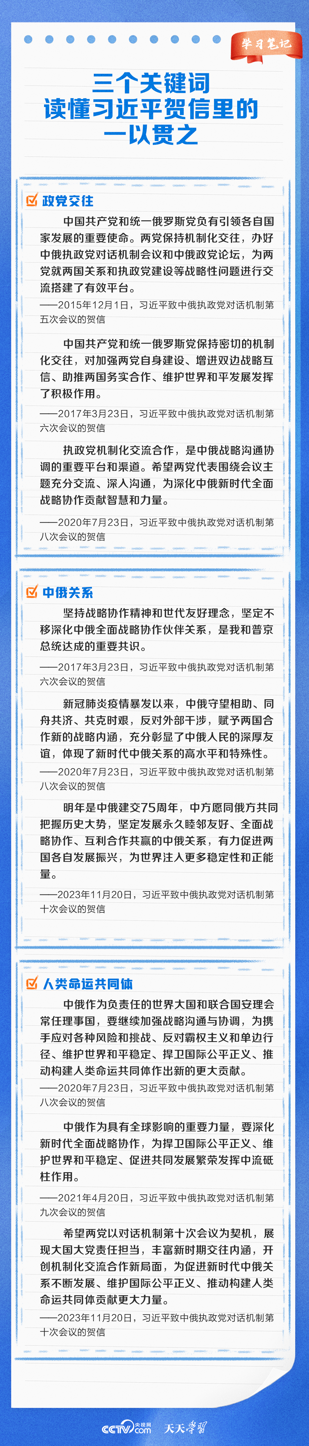 天天學(xué)習(xí)11月20日,中俄執(zhí)政黨對話機(jī)制第十次會議以視頻方式舉辦。習(xí)近平總書記同普京總統(tǒng)分別向會議致賀信。習(xí)近平總書記在賀信中強(qiáng)調(diào),中俄執(zhí)政黨對話機(jī)制已發(fā)展成為兩國鞏固政治互信、密切戰(zhàn)略協(xié)作、推進(jìn)互利合作的獨(dú)特渠道和平臺。