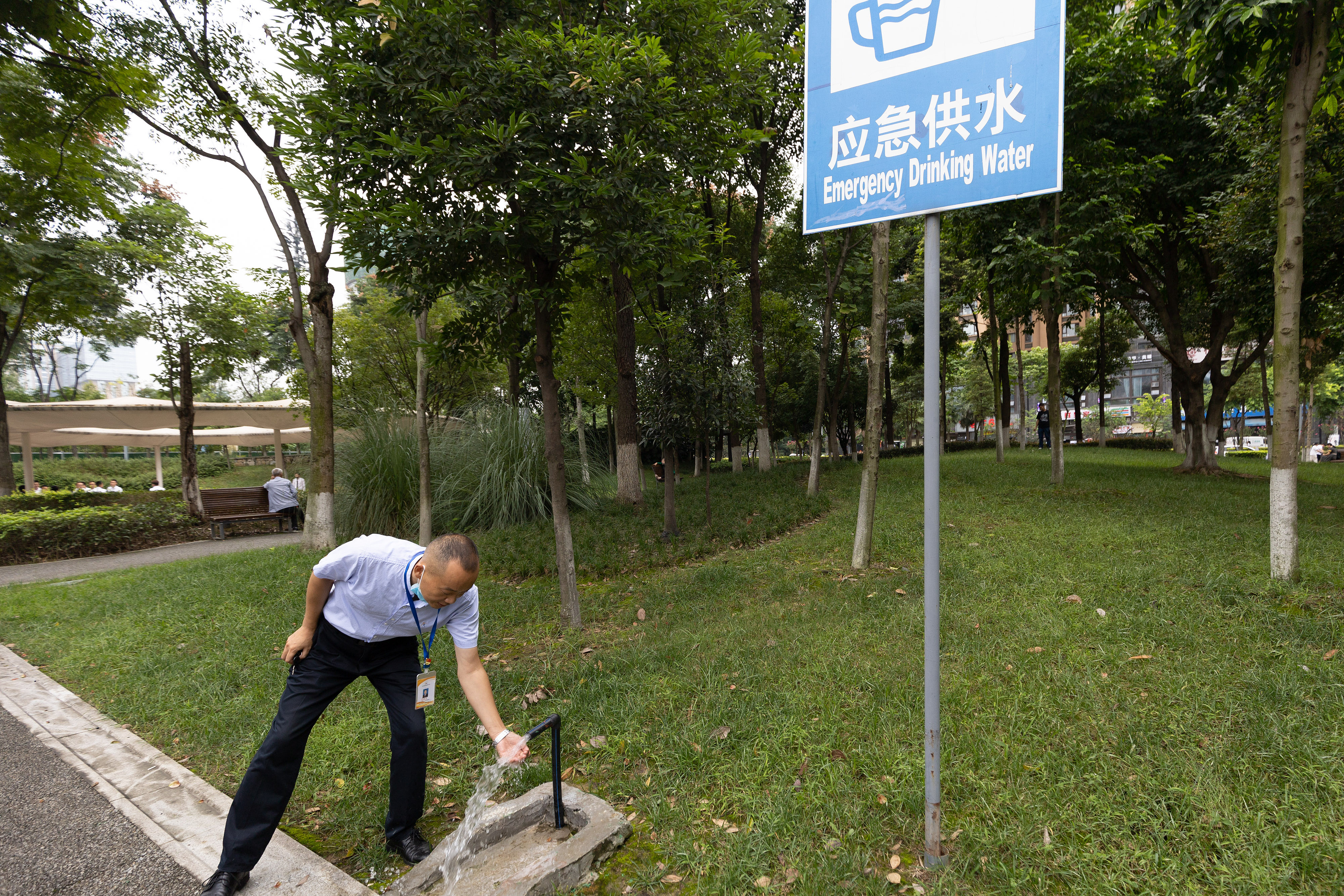 位于成都高新區(qū)天府二街與天府三街之間的大源中央公園,應急供水設施標識醒目。