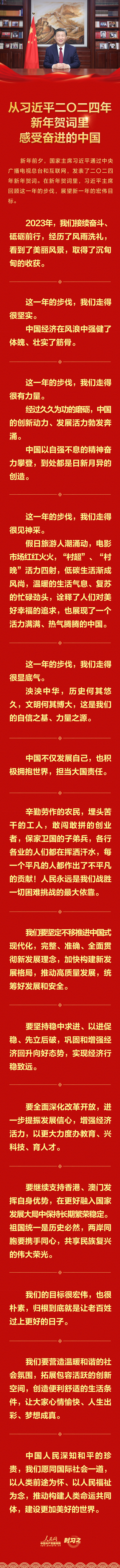 2023年12月31日晚,國(guó)家主席習(xí)近平在北京發(fā)表二〇二四年新年賀詞。賀詞飽含對(duì)廣大人民群眾的深情,彰顯對(duì)中國(guó)發(fā)展的堅(jiān)定信心?;厥走^(guò)往,展望未來(lái);砥礪前行,征程再起。讓我們一起在習(xí)近平主席的新年賀詞中感受直抵心靈的溫暖、催人奮進(jìn)的力量!