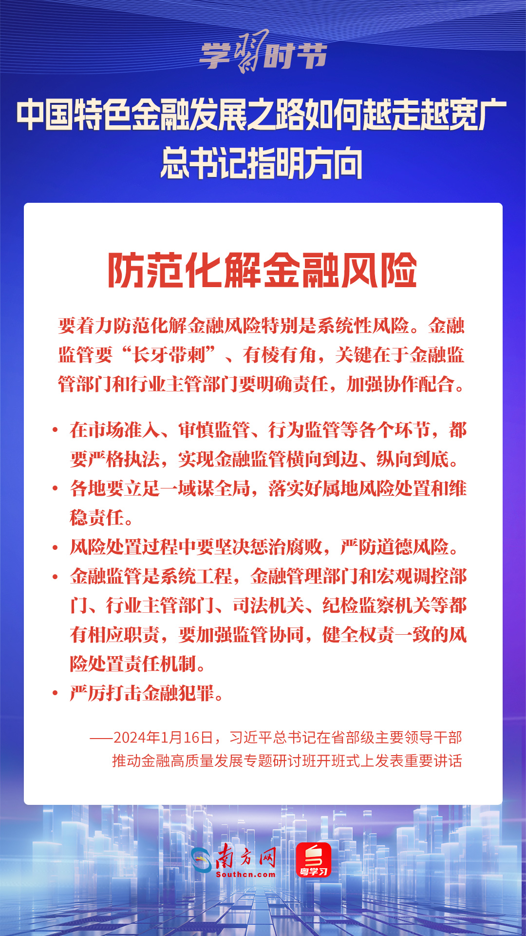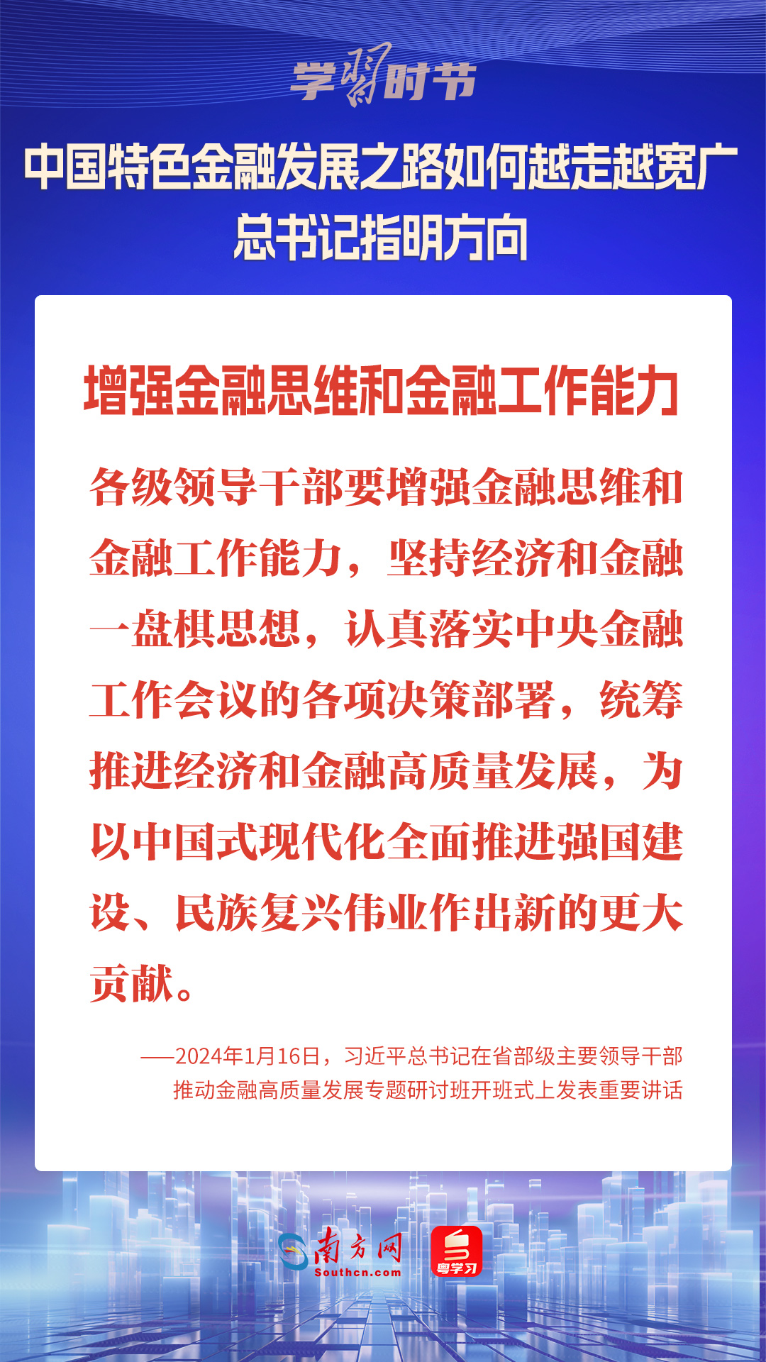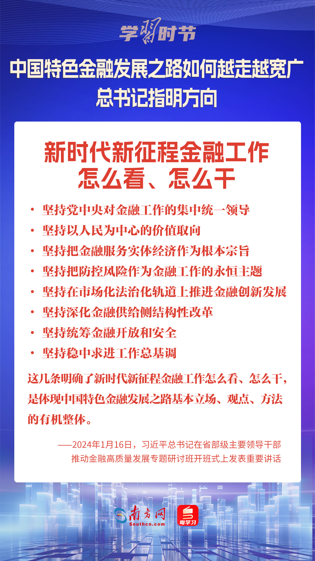 1月16日,中共中央總書(shū)記、國(guó)家主席、中央軍委主席習(xí)近平在省部級(jí)主要領(lǐng)導(dǎo)干部推動(dòng)金融高質(zhì)量發(fā)展專題研討班開(kāi)班式上發(fā)表重要講話,為中國(guó)特色金融發(fā)展之路指明方向。