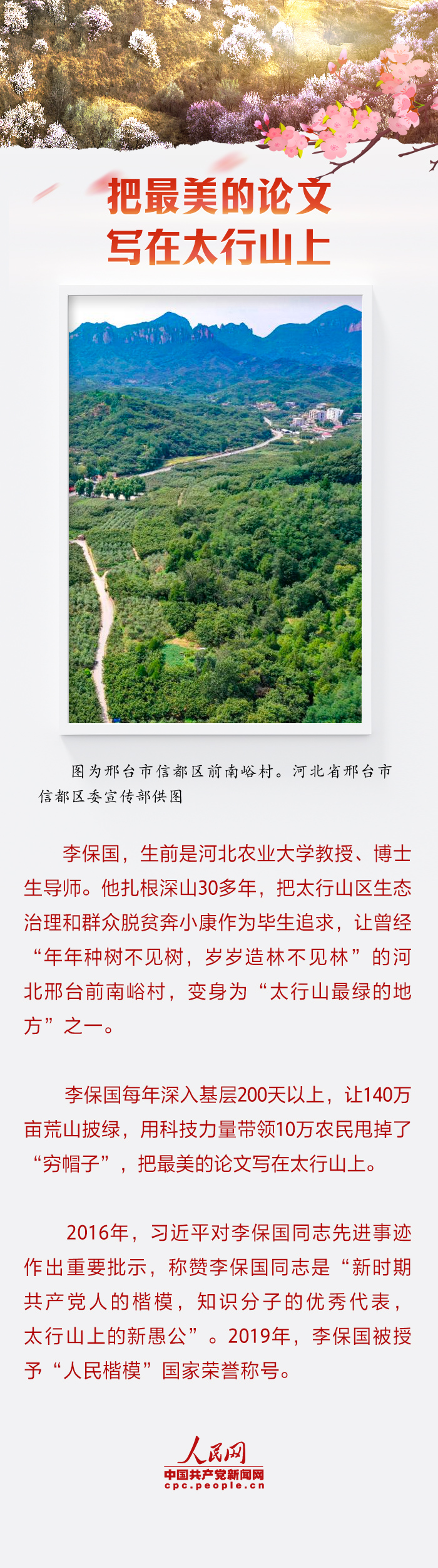 習(xí)近平總書(shū)記連續(xù)十多年履行與春天的“綠色約定”,心系國(guó)土綠化事業(yè),引領(lǐng)推進(jìn)生態(tài)文明建設(shè)。“抓生態(tài)文明建設(shè),既要靠物質(zhì),也要靠精神?!绷?xí)近平總書(shū)記曾多次提到英模厚植精神之“樹(shù)”為人民謀幸福的事跡,一起學(xué)習(xí)領(lǐng)悟。