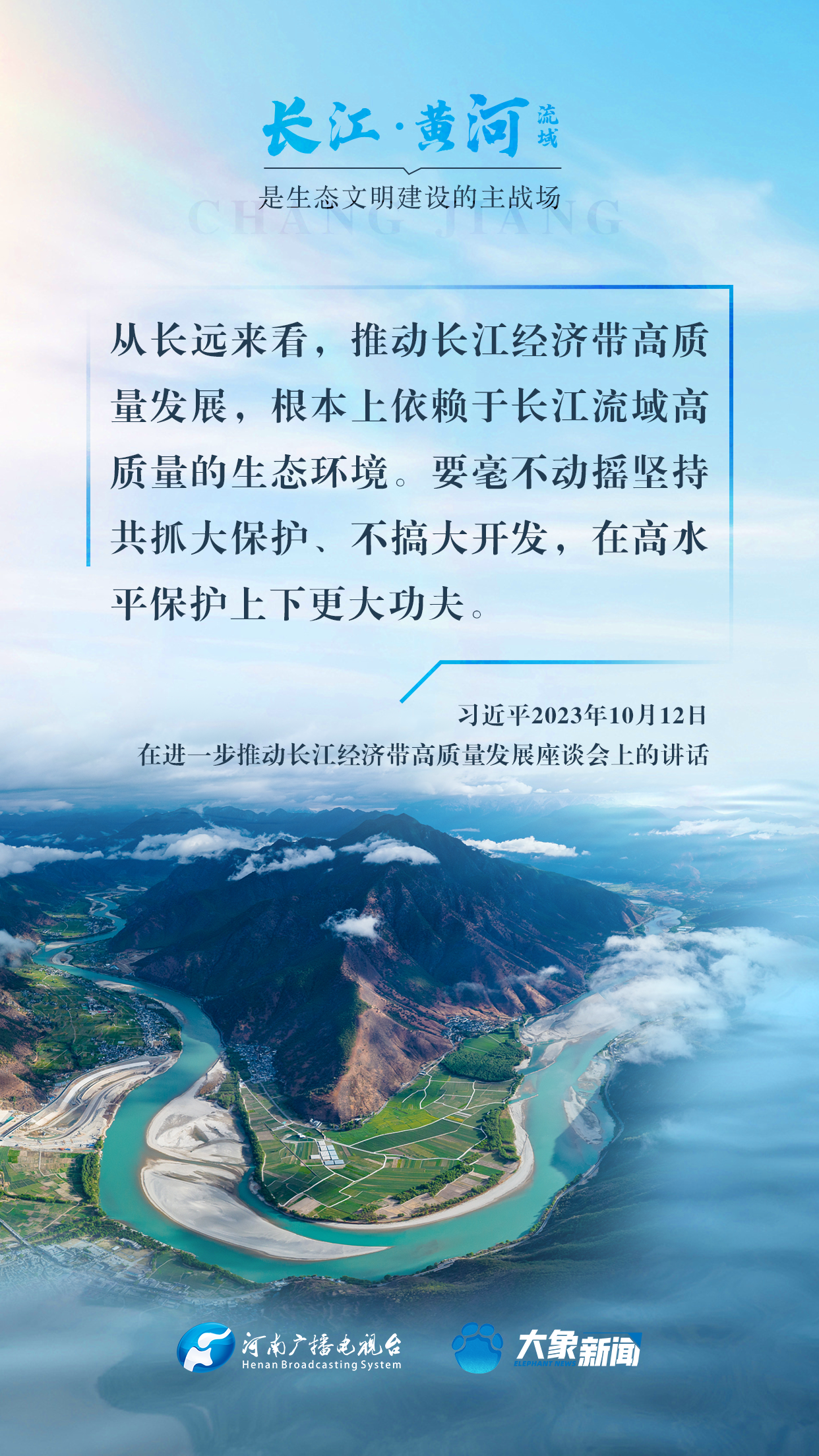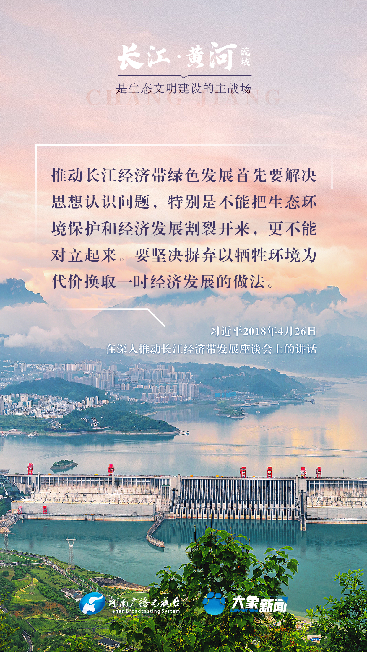 長江、黃河都是中華民族的母親河,習(xí)近平總書記高度重視長江、黃河的生態(tài)保護(hù),多次諄諄告誡:“保護(hù)母親河是事關(guān)中華民族偉大復(fù)興和永續(xù)發(fā)展的千秋大計(jì)”“長江、黃河流域是生態(tài)文明建設(shè)的主戰(zhàn)場”等等。在第55個(gè)世界地球日到來之際,大象新聞與您一起,感受總書記對母親河的深厚情懷。