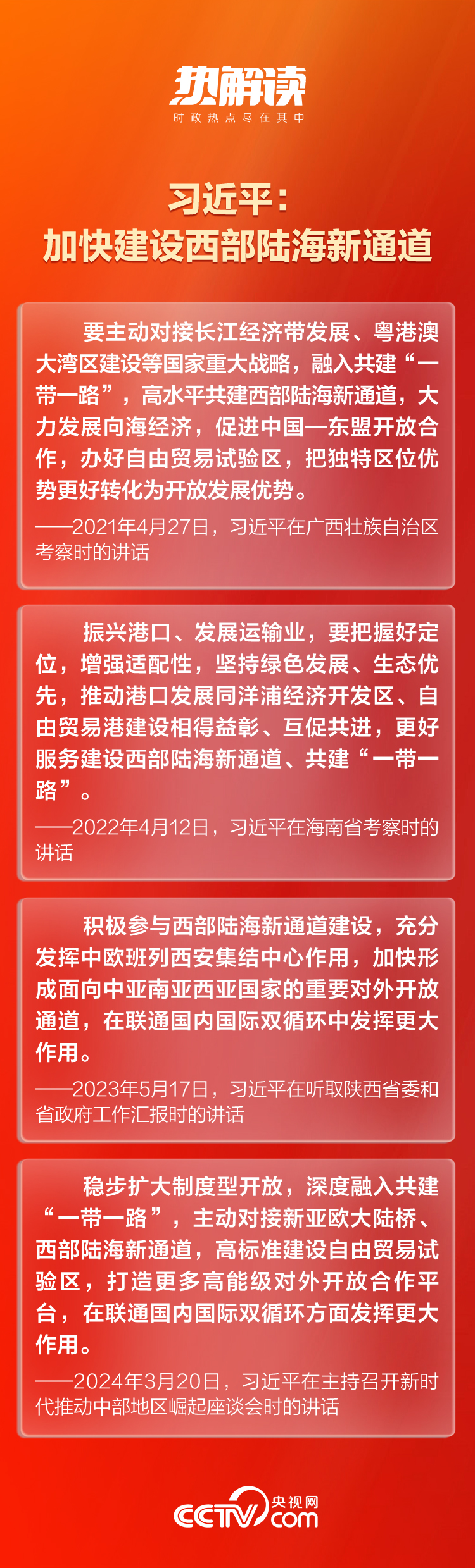 總書記一直對這條通道的建設(shè)十分關(guān)切。近年來,總書記在貴州、陜西、廣西等西部陸海新通道沿線省區(qū)考察時,多次對高水平共建西部陸海新通道作出重要指示。