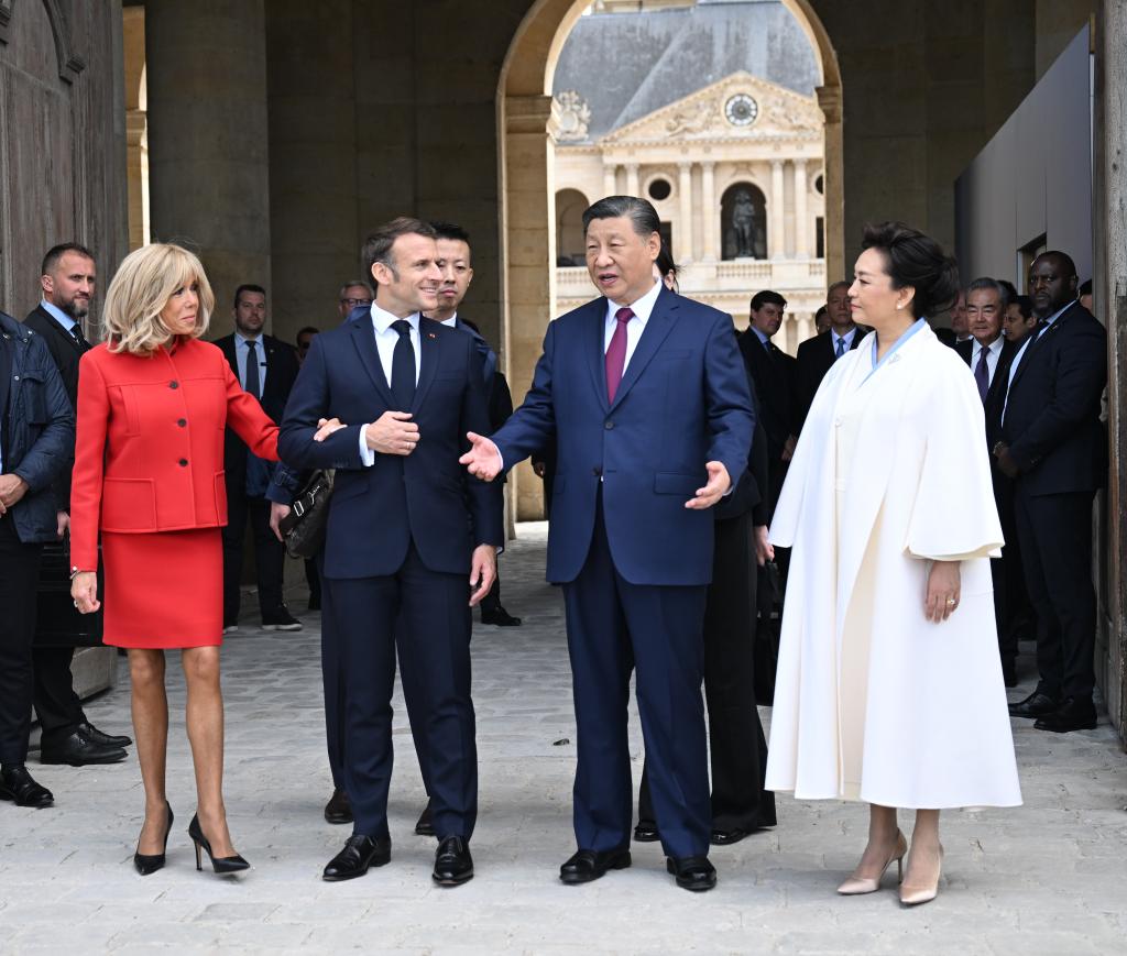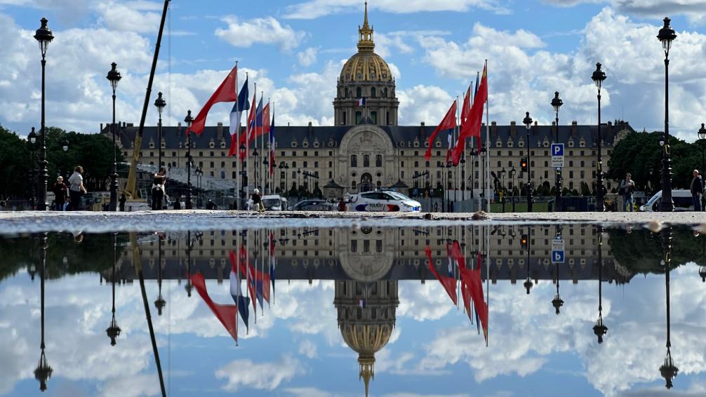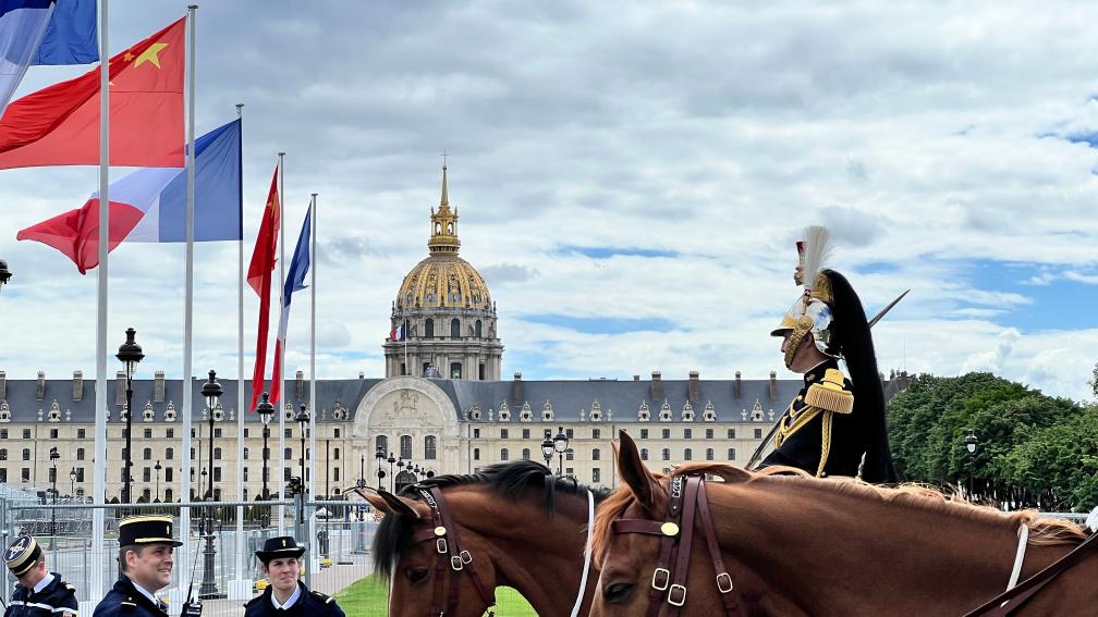??五月的巴黎,風(fēng)和景明。塞納河畔,榮軍院金色穹頂熠熠生輝,五星紅旗和藍白紅三色旗迎風(fēng)飄揚。