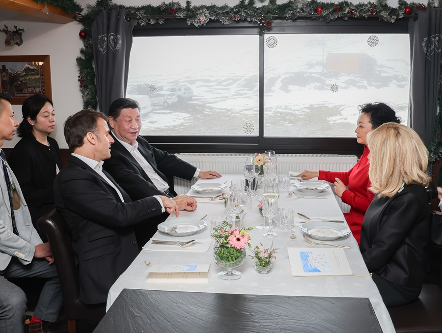 ??前一天,雙方發(fā)表4份聯(lián)合聲明,簽署綠色發(fā)展、航空、農(nóng)業(yè)食品、商務(wù)、人文等領(lǐng)域近20項(xiàng)雙邊合作文件。此時(shí)在春雪紛飛、云海浩渺中,兩國元首“不打領(lǐng)帶”溝通交流,加深彼此理解。此情此景,與兩國元首2019年的“尼斯夜談”、“豫園茶敘”,2023年的“松園會(huì)晤”,一脈相承。