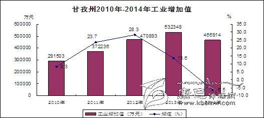 2014年,全州地區(qū)生產(chǎn)總值(GDP)達到206.81億元,按可比價格計算較2013年增長4.2%。其中,第一產(chǎn)業(yè)增加值51.48億元,增長4.6%;第二產(chǎn)業(yè)增加值77.20億元,增長2.4%;第三產(chǎn)業(yè)增加值78.13億元,增長6%。三次產(chǎn)業(yè)結(jié)構(gòu)為24.9:37.3:37.8。