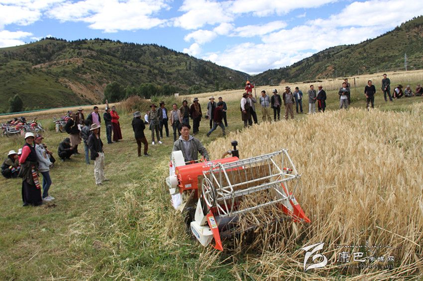 9月14日,在海拔3600多米的理塘縣甲洼鄉(xiāng)下依村成熟青稞地里,縣農牧和科技局的農機手正用小型聯合收割機示范收割青稞。7個行政村的村支書、村主任在現場觀摩學習。俄曲村支書洛真說:“這個小型聯合收割機很適合我們高原,這將大大減輕我們的勞動強度,不用再擔心下雨影響搶收。” (葉強平 攝影報道)