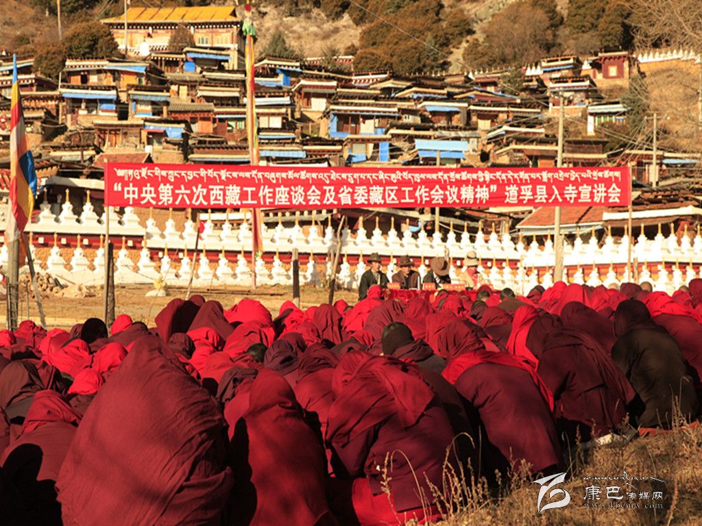 為了讓入寺宣講活動有序開展,省、州、縣成立了專項工作組,加強對入寺宣講工作的領導,道孚縣制定了專項工作方案,具體負責入寺宣講的組織實施。“為了確保入寺宣講工作的順利進行,我們走訪了覺姆的家庭,對她們的家屬和僧尼講解了這次入寺宣講的重要意義,消除其顧慮。同時,加大了惠寺、惠僧政策的宣傳,為她們辦理了養(yǎng)老保險、低保、醫(yī)療保險等,解決了她們的實際困難和問題,我們的工作也得到了寺廟和僧尼的支持。”菜子坡覺姆寺管委會干部西繞錯說。