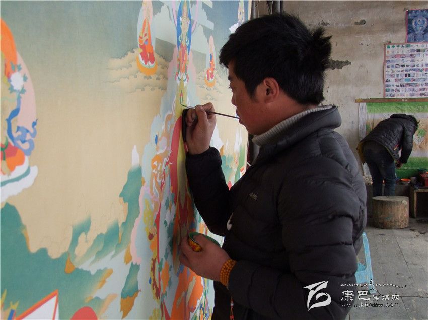 3月18日,在德格縣達馬鄉(xiāng)一間不起眼的藏族民居里,10多個青年農(nóng)民正在師傅澤批的精心指點下,學(xué)習(xí)唐卡繪畫技術(shù)。