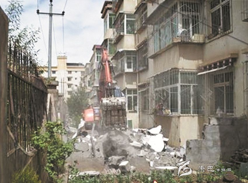 縣政府小區(qū)違法建筑拆除中。