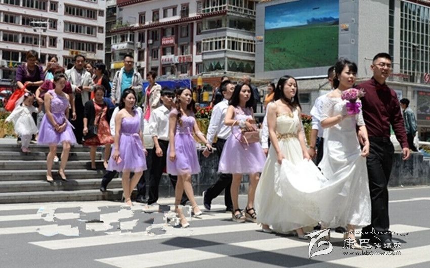 本網(wǎng)訊(吳小軍 李向雨)8月8日,記者在甘孜州康定市中心折多河邊看到一對(duì)身著新婚盛裝的新人通過(guò)步行的方式完成他們的迎親儀式。迎親全程沒(méi)有一輛婚車(chē),新郎新娘、伴郎伴娘以及30多位親友從家出發(fā)沿折多河人行道集體步行抵達(dá)康定情歌大酒店婚禮現(xiàn)場(chǎng)。和以往長(zhǎng)長(zhǎng)的繞街串巷的婚車(chē)隊(duì)相比,這支獨(dú)特的步行迎親隊(duì)伍更加引人注目,瞬間成為一道亮麗的風(fēng)景線,引起市民、游客紛紛圍觀拍照。