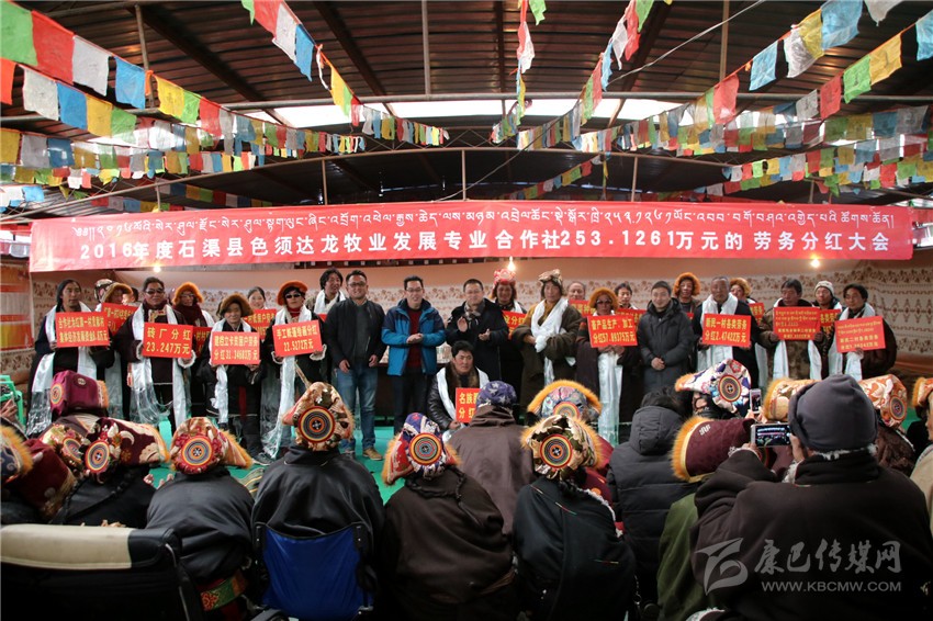 本網(wǎng)訊(刁海瀚 文/圖)日前,在海拔4500米的石渠縣色須鎮(zhèn)紅旗一村村民活動(dòng)中心院內(nèi),色須鎮(zhèn)達(dá)攏合作社將253萬余元年底分紅分派給了263個(gè)牧民家庭,其中,建檔立卡貧困戶達(dá)70戶。