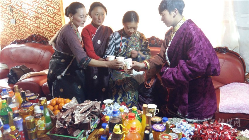 根秋卓瑪一家是俄多瑪鄉(xiāng)的村民,初一一大早,根秋卓瑪就穿上節(jié)日的盛裝?!敖裉煳覀円涯曦洈[放出來,等親戚朋友祈福回來,我們一家就會圍坐在一起,拉著家常、吃著美食、唱著山歌,高高興興歡度藏歷新年?!备镒楷斦f。