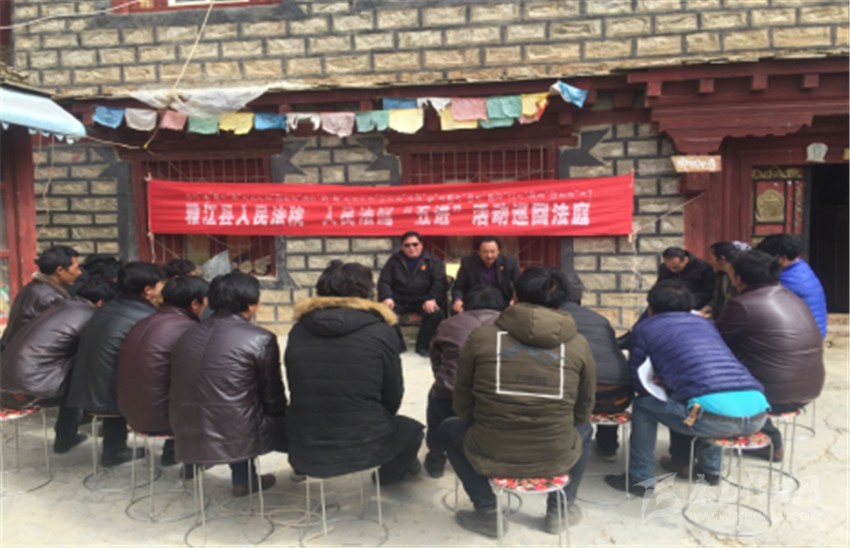 由于布孜村交通落后,給村民的出行帶來了極大的不便,也制約著村里的經(jīng)濟(jì)發(fā)展,為了有更好的生活條件,大部分村民選擇搬遷到離村不遠(yuǎn)的鄰縣理塘縣生活。在長(zhǎng)期的生活接觸中,兩地村民常為一些小事“扯皮”,有了糾紛也不知道如何用法律來解決。為解決布孜村村民法律意識(shí)淡薄的問題,雅江縣人民法院專門組建宣講隊(duì)深入基層,向已搬遷,但戶籍所在地仍屬雅江縣的布孜村村民分析案情、講解法律知識(shí)。