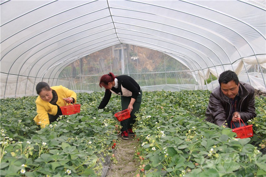 沈村依山靠河,省道217線穿村而過,區(qū)位和資源優(yōu)勢明顯,非常適宜發(fā)展種植業(yè)。早在大棚草莓種植之前,該村有人種植過露天草莓,但長勢不好、品質(zhì)差。根據(jù)當(dāng)?shù)氐乃临Y源,李天林多方考察,向成都百安公司學(xué)習(xí)大棚草莓種植技術(shù),引進(jìn)草莓改良品種,因地制宜發(fā)展優(yōu)勢產(chǎn)業(yè),帶動村民們增收致富。