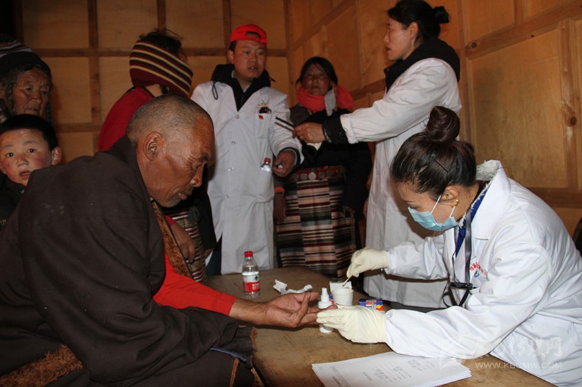 本網(wǎng)訊(葉強平)4月11日,理塘縣衛(wèi)計局組織19名醫(yī)務(wù)人員,深入離縣城60多公里、海拔4200多米的村戈鄉(xiāng)拖仁村,為90多名牧民群眾進行了體重、血壓、B超、心電圖、婦女病篩查等健康檢查,還為群眾建立了健康檔案。圖為醫(yī)務(wù)人員在為牧民群眾測血糖。