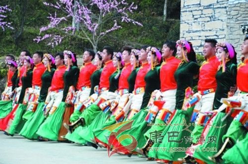 10月26日,在甲居藏寨,處處洋溢著豐收和歡樂的氣氛,人們扶老攜幼,身著節(jié)日的盛裝走到一起,來共同慶祝丹巴嘉絨風(fēng)情節(jié)的順利召開。在一塊空地中,搭建了臨時(shí)的舞臺(tái),看臺(tái)上,幾座古碉模型傲然挺立,在不遠(yuǎn)處,一座古碉矗立在一座小山包上,與古碉模型遙相呼應(yīng)、相映成趣。上午9時(shí)40分,當(dāng)節(jié)目主持人宣布嘉絨風(fēng)情節(jié)正式開始時(shí),一束束搖曳的煙花向空中飛去,在空中炸響后,散發(fā)出五顏六色的煙霧,其中有的還幻化成幾多小小的降落傘,就像多多盛開的鮮花在空中綻放。演出現(xiàn)場(chǎng)前的大地和遠(yuǎn)處的小山坡上到處都站滿了熱情的觀眾,合著禮花的爆裂時(shí)的響聲,將手中的小紅旗展開,高舉過頭頂,有節(jié)奏的左右搖動(dòng),霎時(shí)間,整個(gè)現(xiàn)場(chǎng)成為了紅色的海洋。