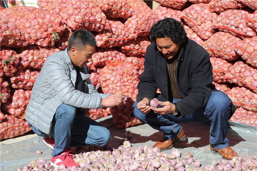 為保障村民的積極性和利益,八埡村積極協(xié)調(diào)村民們成立專業(yè)合作社,并與外地商戶簽訂收購協(xié)議,合作社負責(zé)從農(nóng)戶收購大蒜運往協(xié)議收購商家。種植戶擁珍志瑪看著自己收獲的大蒜說:“今年我家種了2畝多,合作社直接到地頭收購,這讓我們省了不少心”。