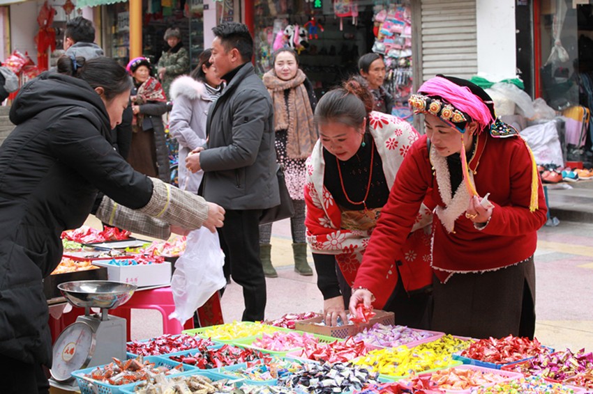 本網(wǎng)訊(縣委中心報(bào)道組 降初澤郎 黃蘭竣 文/圖)隨著春節(jié)和藏歷新年的臨近,丹巴縣年貨市場(chǎng)進(jìn)入銷售旺季,濃濃的年味飄溢在全縣的大街小巷。到嘉絨步行街購(gòu)置年貨,早已成為丹巴人的習(xí)慣,這幾天步行街就和成都的春熙路一樣熱鬧非凡,只見商家已將年貨擺在街邊,采購(gòu)年貨者絡(luò)繹不絕,吆喝聲不絕于耳,店鋪里的年貨琳瑯滿目,各式各樣的春節(jié)飾品擺滿貨架,紅紅的中國(guó)結(jié)、大紅的燈籠、春聯(lián)、年畫,還有美味的糖果食物,音像店里飄出美妙歌聲......人們紛紛開始備年貨,迎新春。
