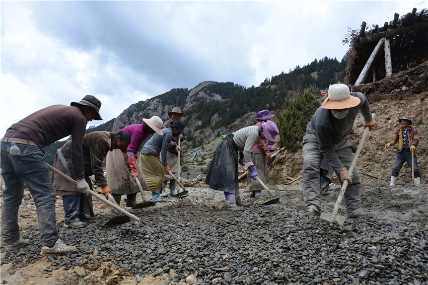 “現(xiàn)在建設(shè)的聯(lián)戶路總長(zhǎng)5公里,寬2.5米,高10公分,預(yù)計(jì)在月底前全部修建完成,建好后將大大提升村民的幸福指數(shù)?!备甑麓羼v村干部扎西擁章介紹,“我們駐村工作組和群眾參與修建,就是要在一線匯聚脫貧攻堅(jiān)的力量,才能激發(fā)群眾脫貧的內(nèi)生動(dòng)力和對(duì)美好生活的向往,才能真正意義上實(shí)現(xiàn)脫貧奔康。”