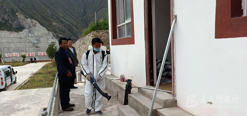 疾控人員正在巴塘安置點(diǎn)進(jìn)行消毒。