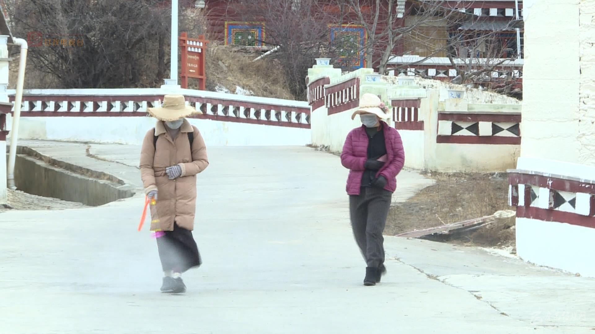 除了7個(gè)州縣級(jí)卡點(diǎn)外,在各鄉(xiāng)村同樣是嚴(yán)防死守,筑牢了嚴(yán)控疫情的第一防線。在距離縣城三公里的格西鄉(xiāng)若珠村村口,我們看到村黨支部書記澤機(jī)和村委會(huì)主任尼瑪降澤頂著寒風(fēng)依然駐守在卡點(diǎn)上。尼瑪降澤介紹說(shuō)全村有65戶283人,他說(shuō)支部書記負(fù)責(zé)村口卡點(diǎn)的24小時(shí)值守,其余六名村干部就負(fù)責(zé)包戶巡邏檢查,每天村里的消毒,村民的體溫監(jiān)測(cè)統(tǒng)計(jì)等等,大家都繃緊著嚴(yán)防死守這根弦。