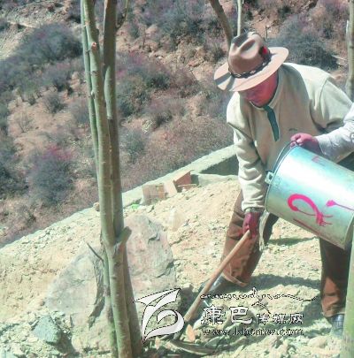 “為大地播綠,植樹造林美化家鄉(xiāng)。”從警一生的丁真曲扎退休前就有用晚年在家鄉(xiāng)植樹綠化,為后代造福的想法。退休賦閑在家,別無所求的丁真曲扎用行動讓自己的想法變成現(xiàn)實。