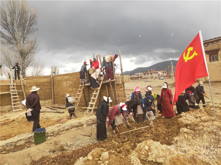 本網(wǎng)訊 3月28日,在理塘縣濯桑鄉(xiāng)康呷村,村民們正熱火朝天地修繕改造土墻房,為推進本地文化特色的民居游作準備。
