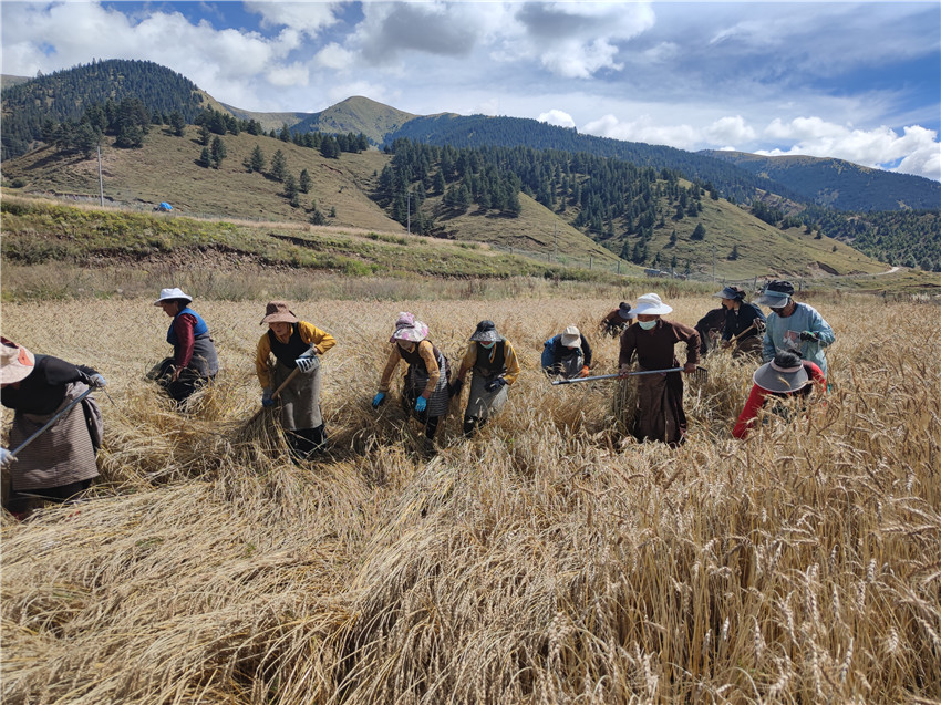 “增德村距鄉(xiāng)衛(wèi)生院差不多有6公里左右,衛(wèi)生院醫(yī)護(hù)人員每天到秋收現(xiàn)場對群眾進(jìn)行核酸檢測,解決了秋收期間群眾兩頭跑的實(shí)際問題,現(xiàn)在鄉(xiāng)干部又來幫助我們秋收,今年豐收應(yīng)該沒有問題?!痹麓妩h支部書記格桑甲措說。