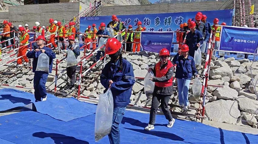 “今年放流的魚苗種類繁多,有四川裂腹魚、短須裂腹魚、長絲裂腹魚、裸腹葉須魚、軟刺裸裂尻等,其中,裸腹葉須魚為中國瀕危動物紅皮書‘易?!~類,四川裂腹魚為四川省重點保護魚類?!比A電金上葉巴灘分公司負責(zé)人說,為減少工程建設(shè)對魚類及水生生物的影響,公司建立了萬里長江第一級魚類增殖放流站,是國內(nèi)首個截流當(dāng)年開展增殖放流的水電站,自2019年首次舉辦試驗性增殖放流活動以來,累計放流106萬尾特有珍稀魚苗。同時為進一步推進金沙江魚類種群恢復(fù)、水域生態(tài)環(huán)境的改善,公司還追加了1.7億元的環(huán)保投資,增設(shè)了一臺生態(tài)備用機組,提高運行期生態(tài)下泄流量的安全度和保證率。聯(lián)合華中農(nóng)業(yè)大學(xué)開展黃石爬鮡、姚氏高原鰍等遠期放流魚種人工繁殖技術(shù)研究,采取分層取水技術(shù),有效改善水庫下泄水溫,為魚類繁殖生存提供適宜條件。